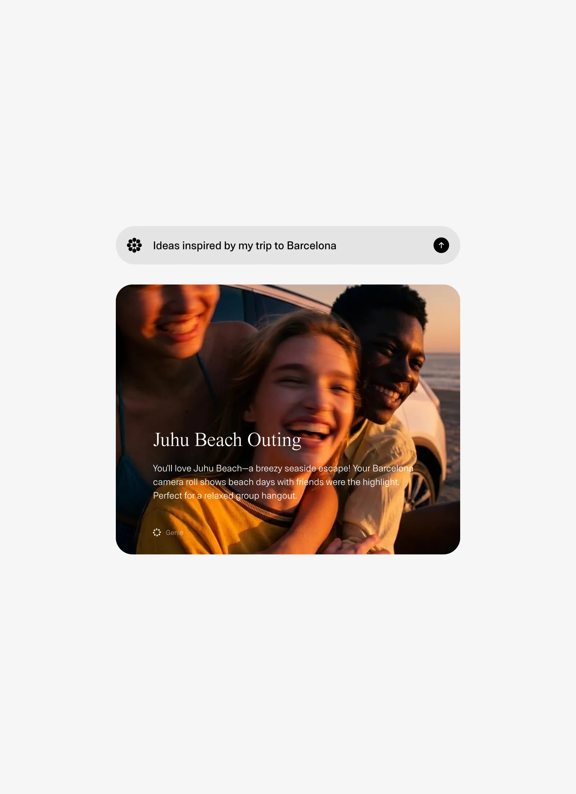 With the Narrative in place, your first search feels like your hundredth because we already understand the contours of your own corner of the universe. And this is only the starting point. As the app has time to analyze more photos, your Narrative grows in depth and nuance. As you do new things and take more photos of them, new branches are added. With every Genie interaction you have, your Narrative (and the Genie experience it powers) gets even better.